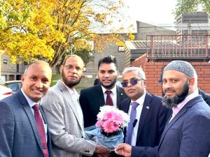 The delegation included prominent community figures — Maulana Noman Ahmed, Abul Kashem Khan, Maulana Sharif Hossain, Nurul Amin Tarek (General Secretary, North Bangla Press Club), Raihan Khan, Mohsin Ahmed, Journalist Sarwar Hossain, Sheikh Abdul Kaiyum, Anwar Hossain, A.K. Talukdar, Mokhlesur Rahman, Abul Kalam Chowdhury, Noman Ahmed Chowdhury, Abdur Rakib, Mohammad Abdul Kadir, Matasin Ali, Habibur Rahman, Tofail Ahmed, Rahim Khan, Siddiqur Rahman Chowdhury, Abdur Rahman Musa, Mushfiq Shahjahan Chowdhury, Mahmud Hossain, Burhan Uddin, and Foysal Chowdhury, among others.
